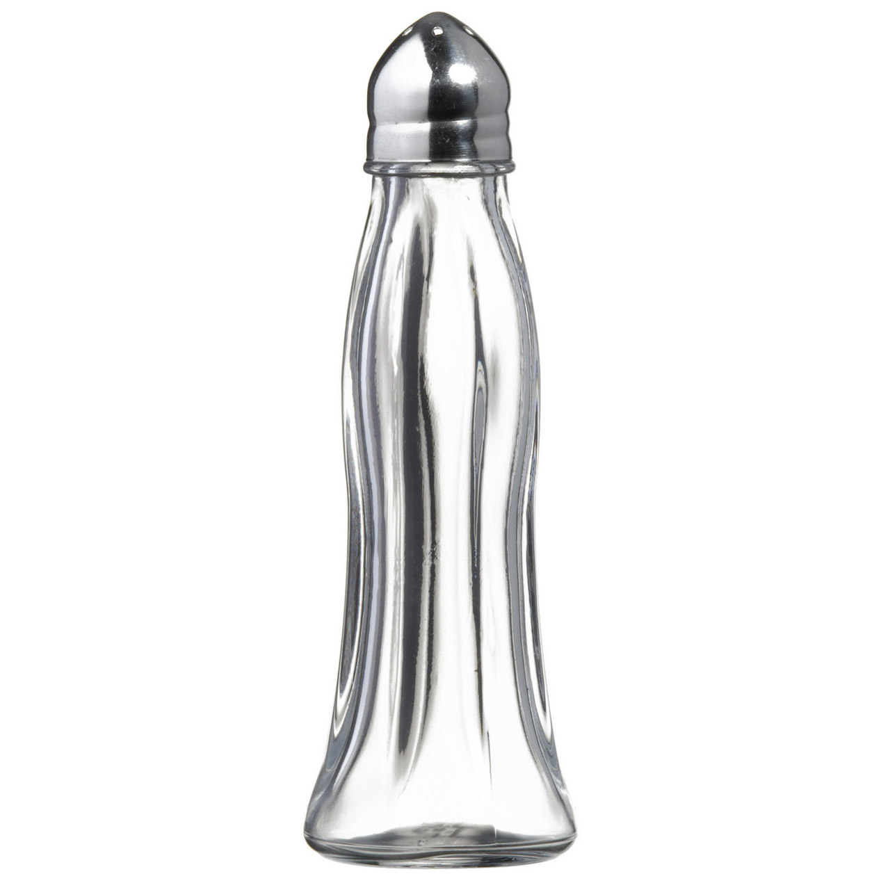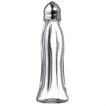 Skleněné sypátko s nerezovým víčkem vhodné na sůl, pepř, skořici apod. Výška 12 cm.