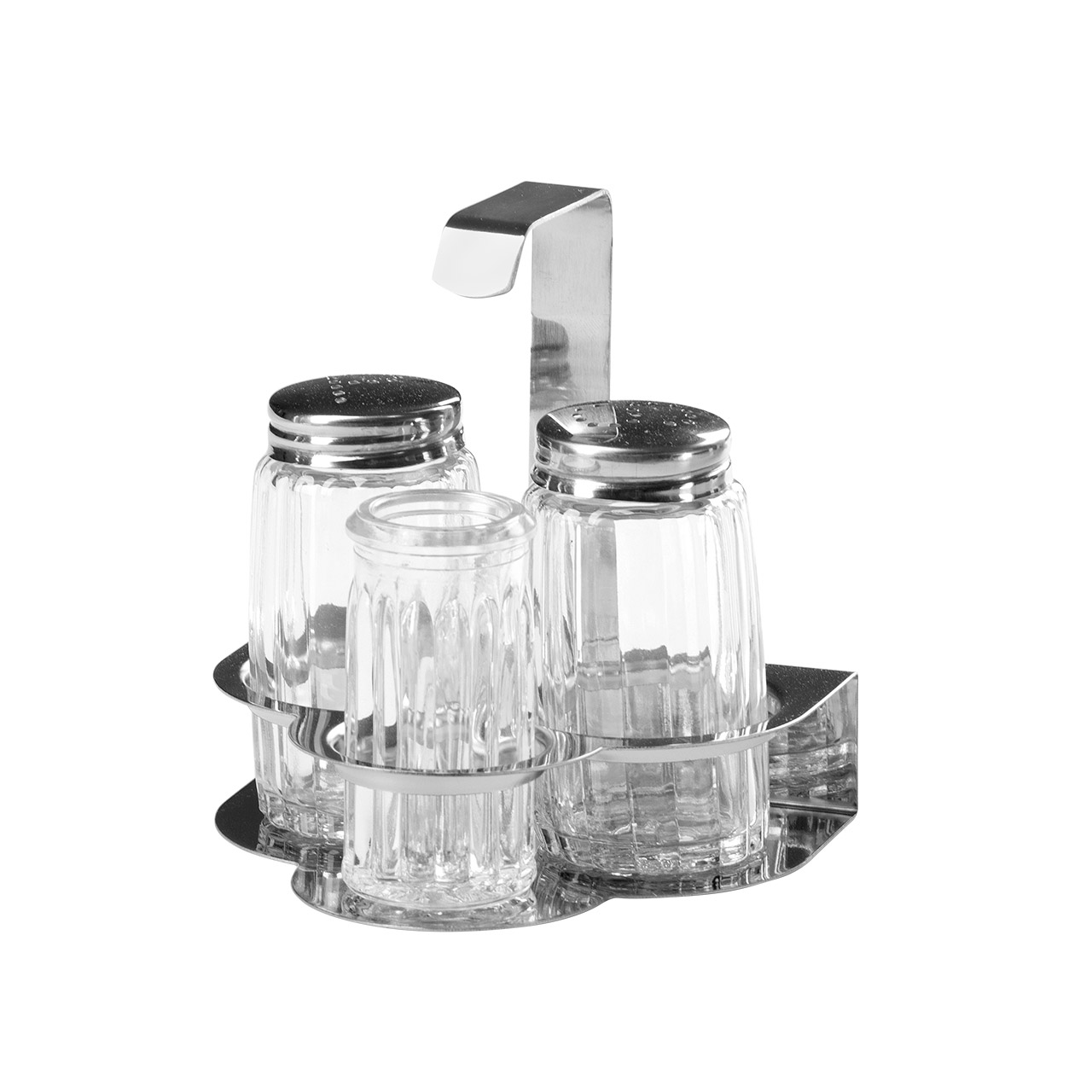 Stolní dochucovací souprava vhodná do všech gastronomických provozů. Vyrobeno z odolného skla a kvalitní nerez oceli.