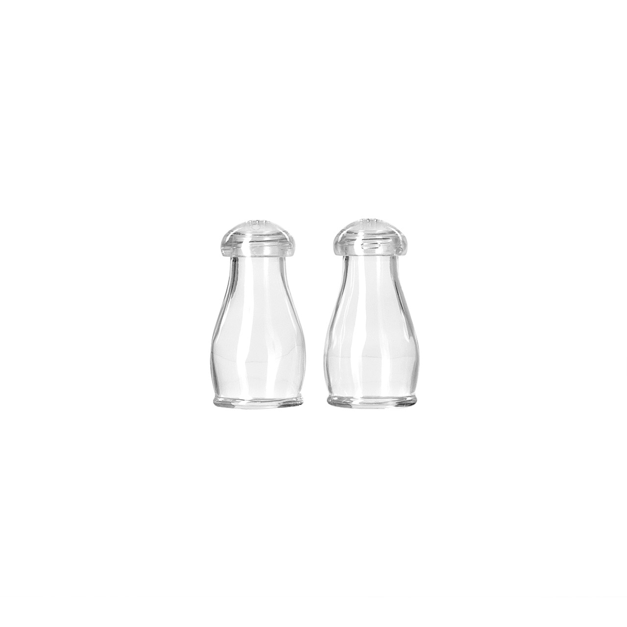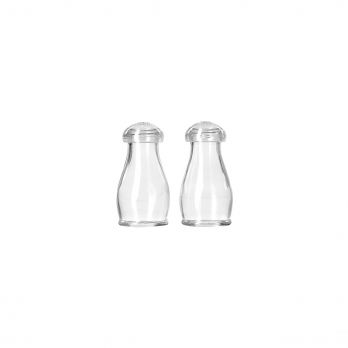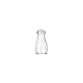 Skleněná solnička/pepřenka s plastovým víčkem.