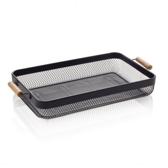 Podnos drátěný 51 x 26,5 x 7,5 cm s uchy kov / dřevo