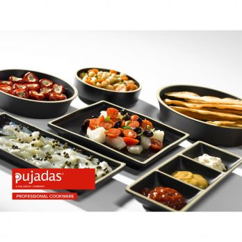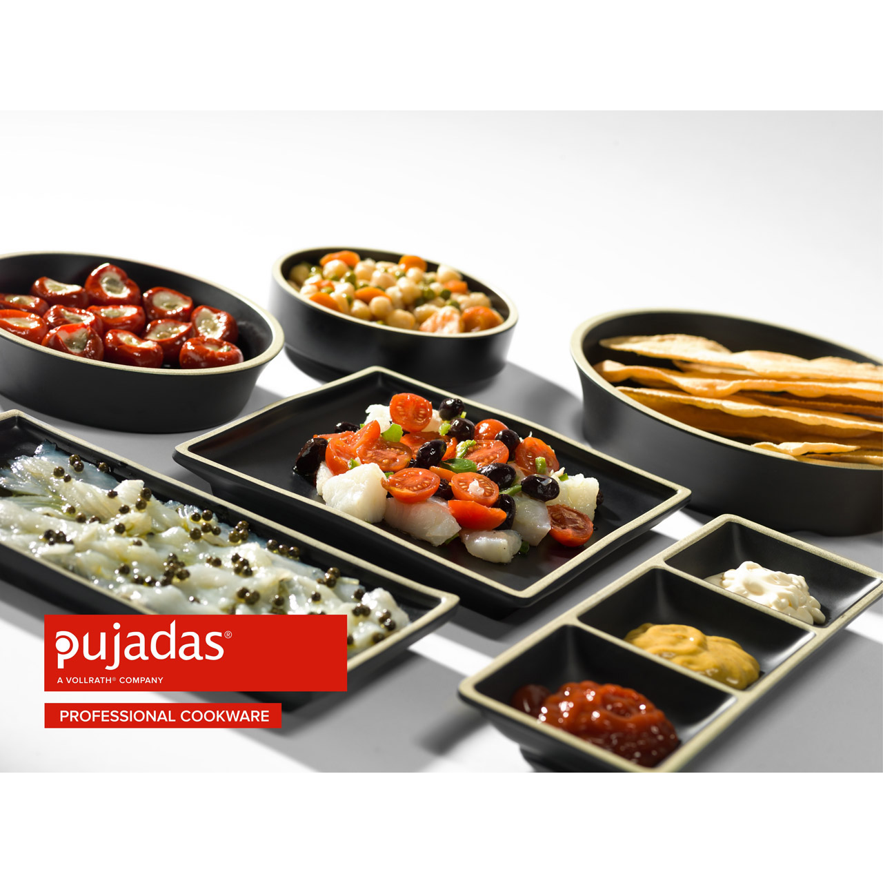 Podnos černý melaminový o rozměru 26x13 cm pro prezentaci jídel.