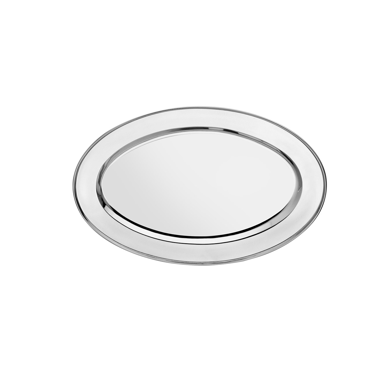 Nerezový podnos oválný o průměru 28,5 cm v lesklé úpravě.