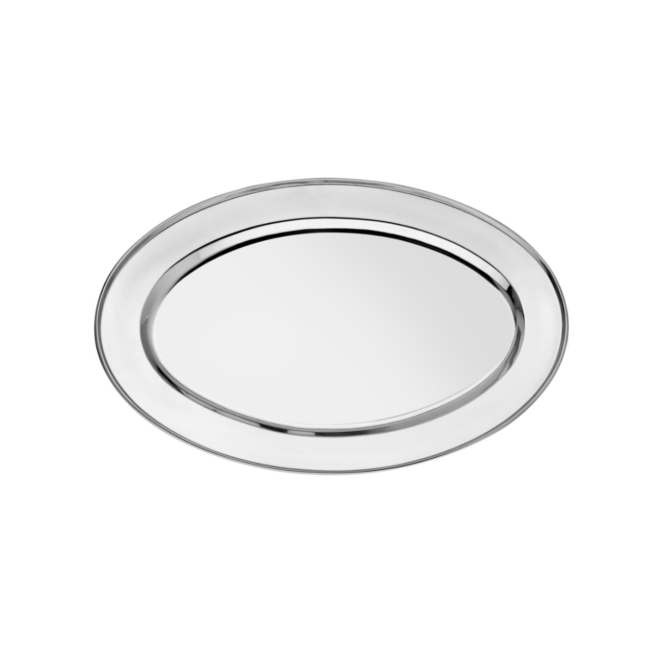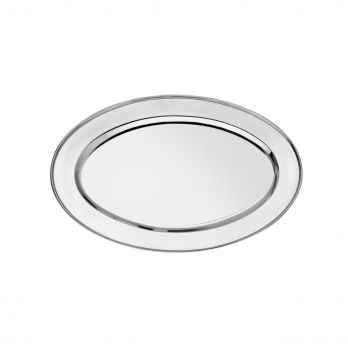 Nerezový podnos oválný o průměru 40 cm.