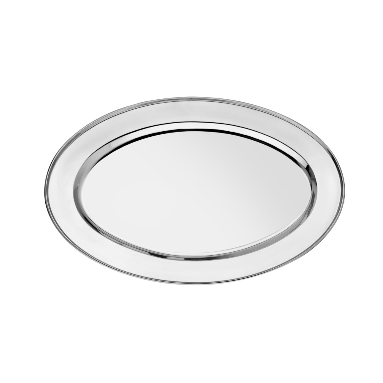 Nerezový podnos oválný o průměru 50 cm.