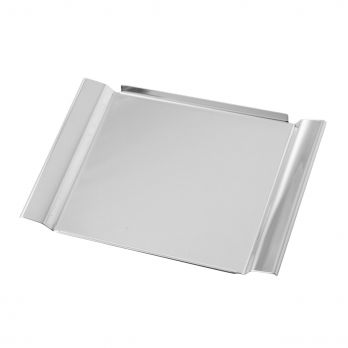 Nerezový obdélníkový podnos o rozměru 19 x 27 cm, který je vhodný do vitrín.