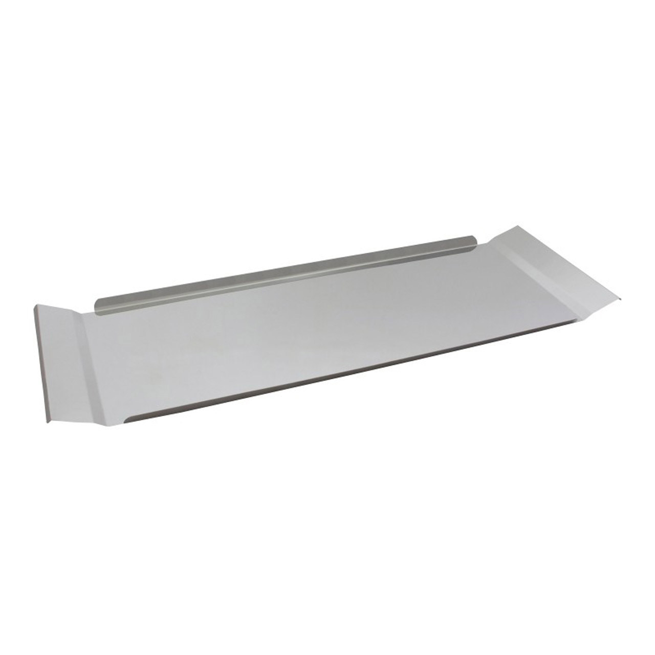 Nerezový obdélníkový podnos o rozměru 49 x 17 cm, který je vhodný do vitrín.