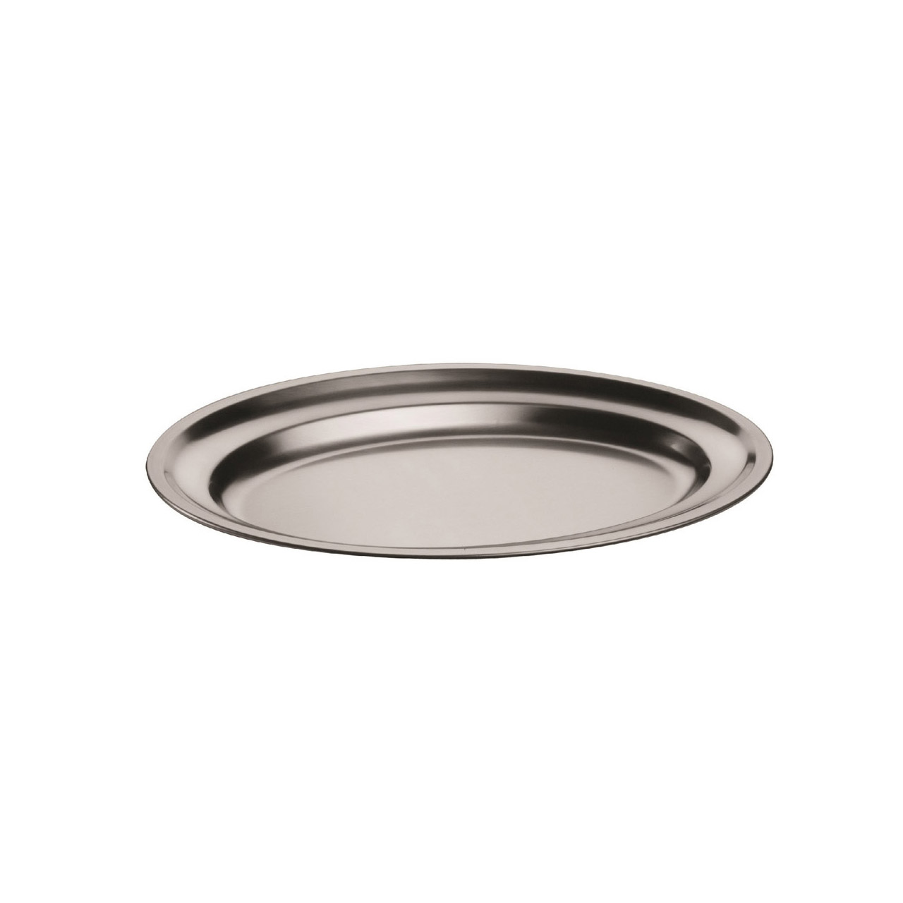 Podnos oválný nerezový o rozměru 31 x 21,5 cm.