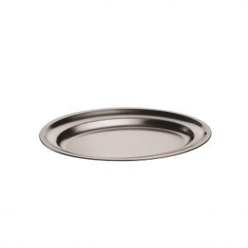 Podnos oválný nerezový o rozměru 42 x 28,5 cm.