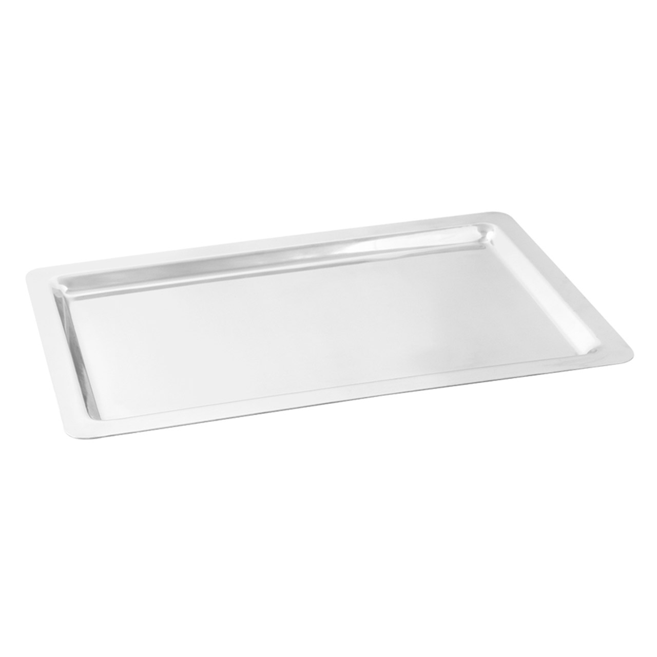 Masivní servírovací nerezový podnos o rozměru 82 x 50 cm.