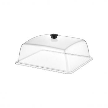 Polykarbonátový poklop na podnos / gastronádobu o rozměru GN 1/2 s úchytem.