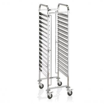 EN Regálový vozík CANTINA pro 15 do 30 Euronorm podnosů, 55 x 42,5 x 174 cm, chromniklová nerezová ocel. Ideální pro profesionální použití v gastronomii. Vysoce kvalitní materiál zajišťuje dlouhou životnost a spolehlivost.