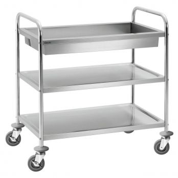 Servírovací vozík se 2 policemi a vanou z chromniklové oceli. 4 otočná kolečka (2 bržděná). Nosnost: cca 120 kg. Rozměry: 920 (Š) x 600 (H) x 945 (V)m. Rozměry polic: 830 (Š) x 510 (H) mm. Rozměry vany: 760 (Š) x 440 (H) mm, 100 (V) mm. Vzdálenost mezi horními policemi: 270 mm a mezi spodními policemi: 265 mm. Stavebnice/snadná montáž. Rozměr vozíku: Š 920 x H 600 x V 945 mm. Hmotnost: 14,1 kg.