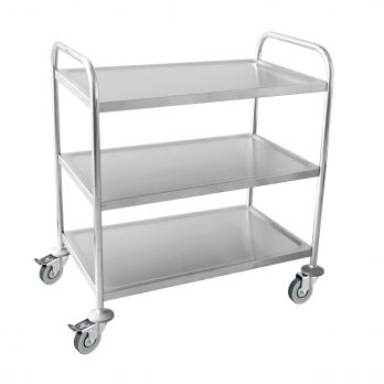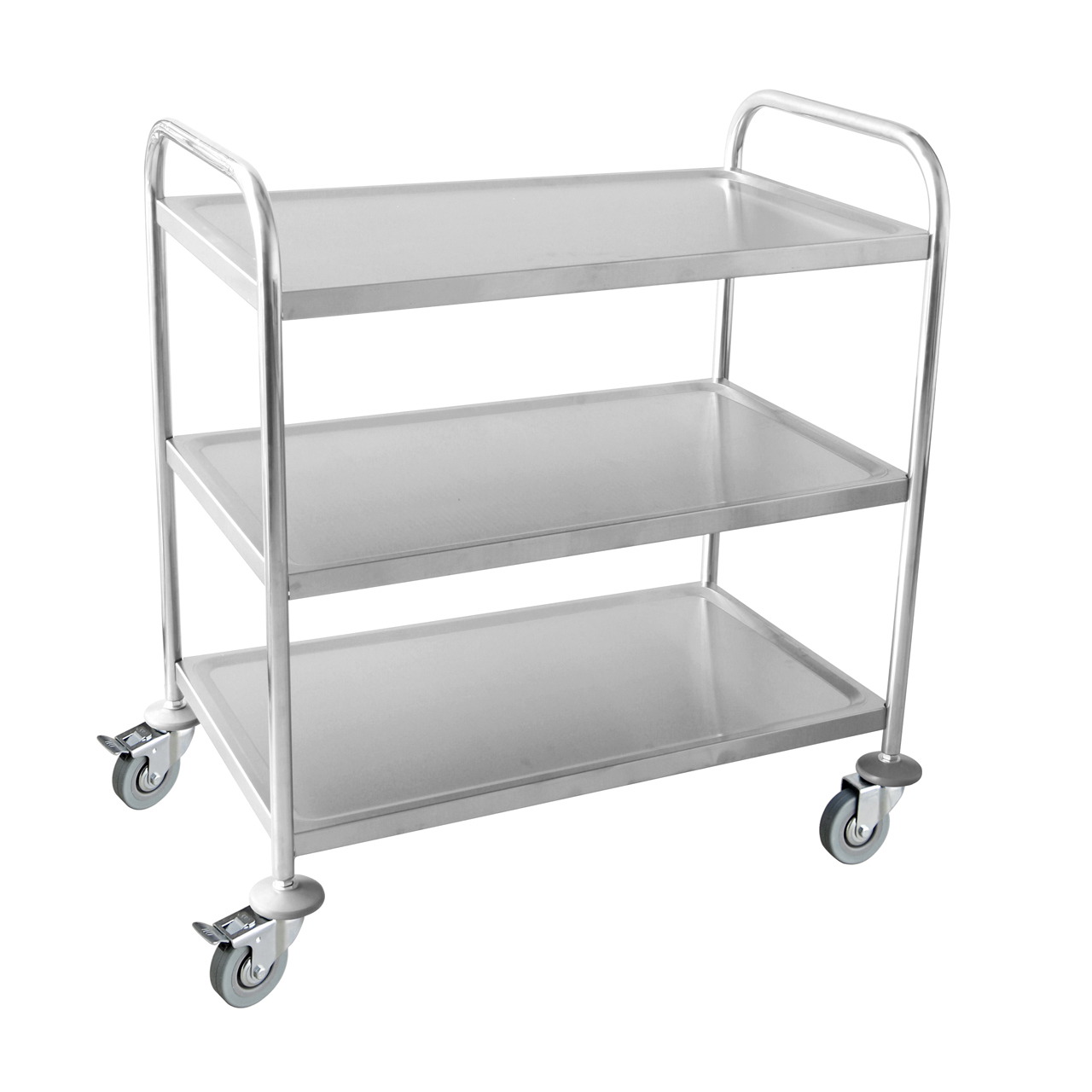 Kvalitní servírovací vozík z nerezové oceli. Vybaven 10cm kolečky pro snadné manévrování.