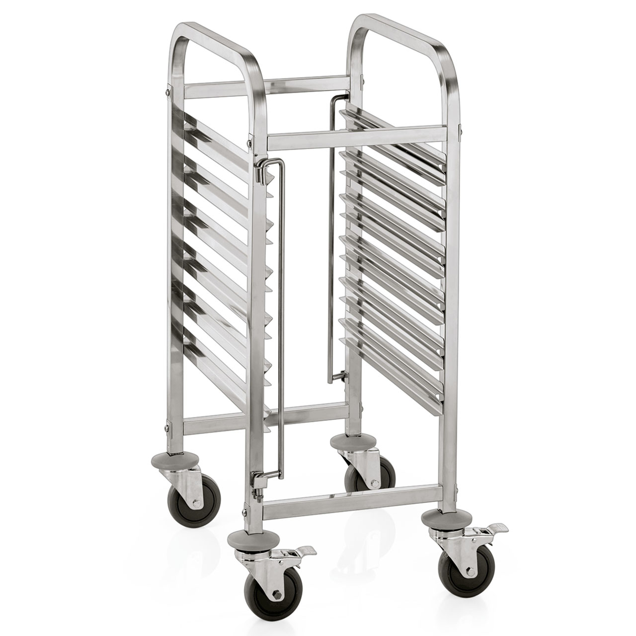 Regálový vozík CANTINA GN 1/1 pro 6 nádoba/12 podnosů, 55 x 38 x 95 cm, chromniklová nerezová ocel. Ideální pro profesionální použití v gastronomii. Vysoce kvalitní materiál zajišťuje dlouhou životnost a spolehlivost.