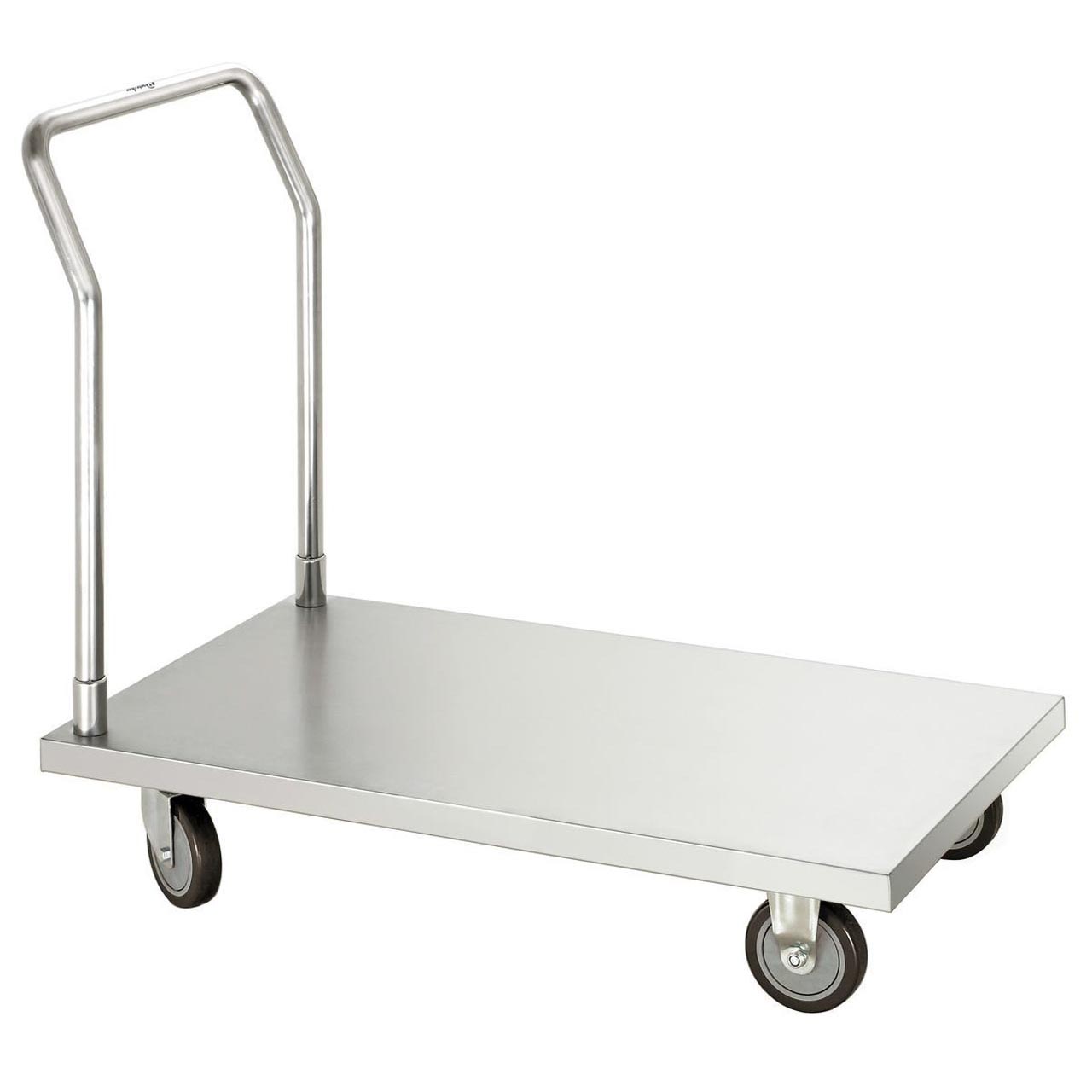 Transportní vozík z chromniklové oceli, 2 otočná kolečka, 2 pevná kolečka (pr. 125 mm). Nosnost: 200 kg. Rozměry transportní plochy: 560 (Š) x 940 (H) mm. Rozměry: 560 (Š) x 1050 (H) x 925 (V) mm. Hmotnost: 14,4 kg.