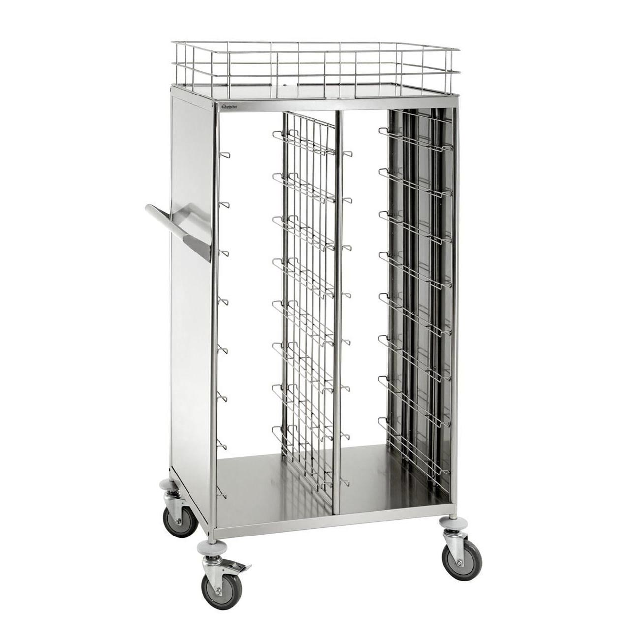 Vhodný pro kantýnské podnosy normy 450 x 355 mm, nebo klasické gastronádoby GN 1/1 (ne pro podnosy GN 1/1). Chromniklová nerezová potravinářská ocel, lze umístit až 16 podnosů. Celkem 2x 8 přihrádek o rozměru 500 x 360 mm. 4 otočná gumová kolečka průměru 125 mm, z toho 2 bržděná. Jednostranný úchyt pro snadné zasouvání. Odkládací prostor se zábradlím 775 (Š) x 530 (H) x 150 (V) mm. Doporučené maximální zatížení na přihrádku: 3,0 kg. Maximální zatížení: do 48 kg. Vzdálenost mezi přihrádkami: 145 mm. ilustrační foto