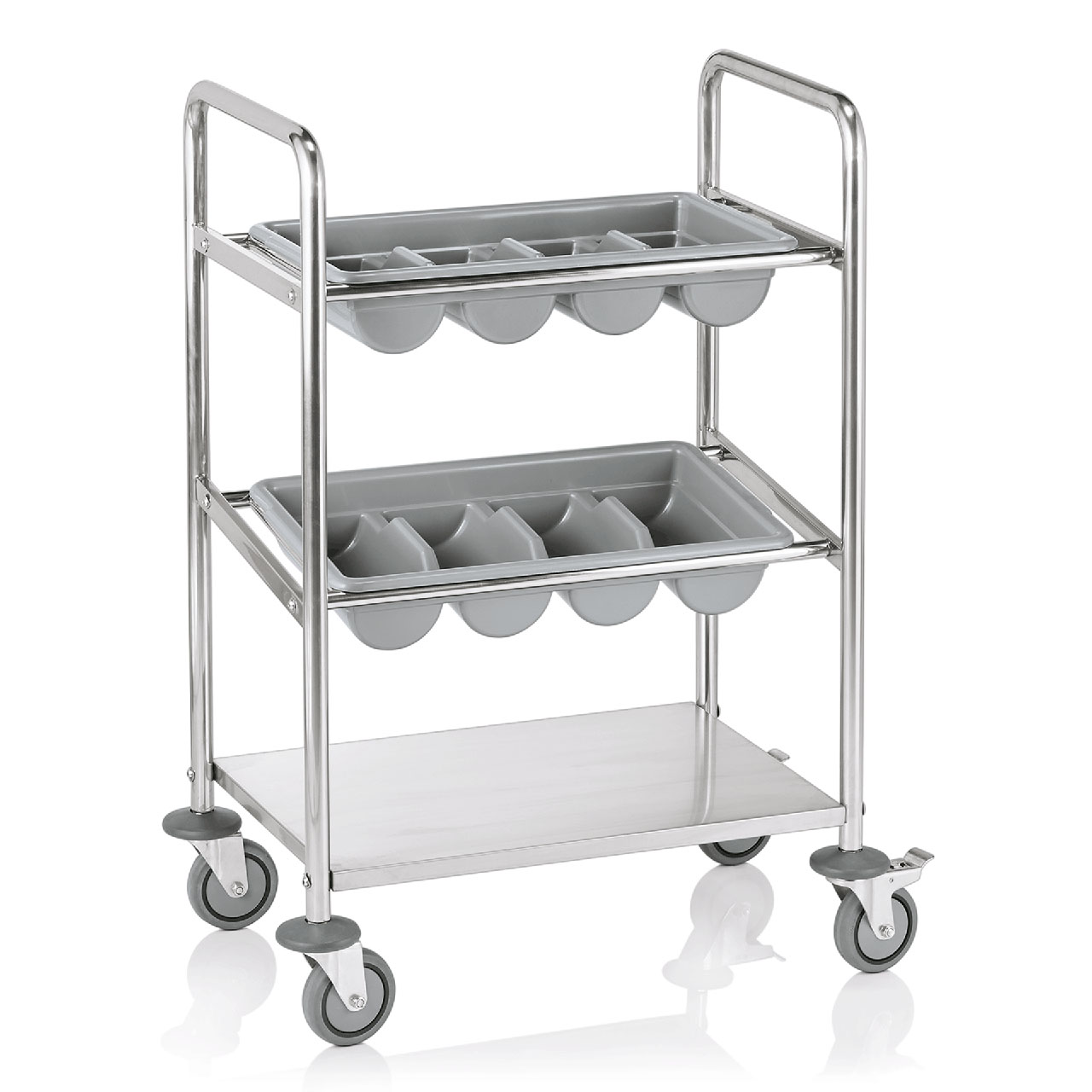 Vozík na příbory, 62 x 40 x 94,5 cm, chromniklová nerezová ocel. Ideální pro profesionální použití v gastronomii. Vysoce kvalitní materiál zajišťuje dlouhou životnost a spolehlivost.