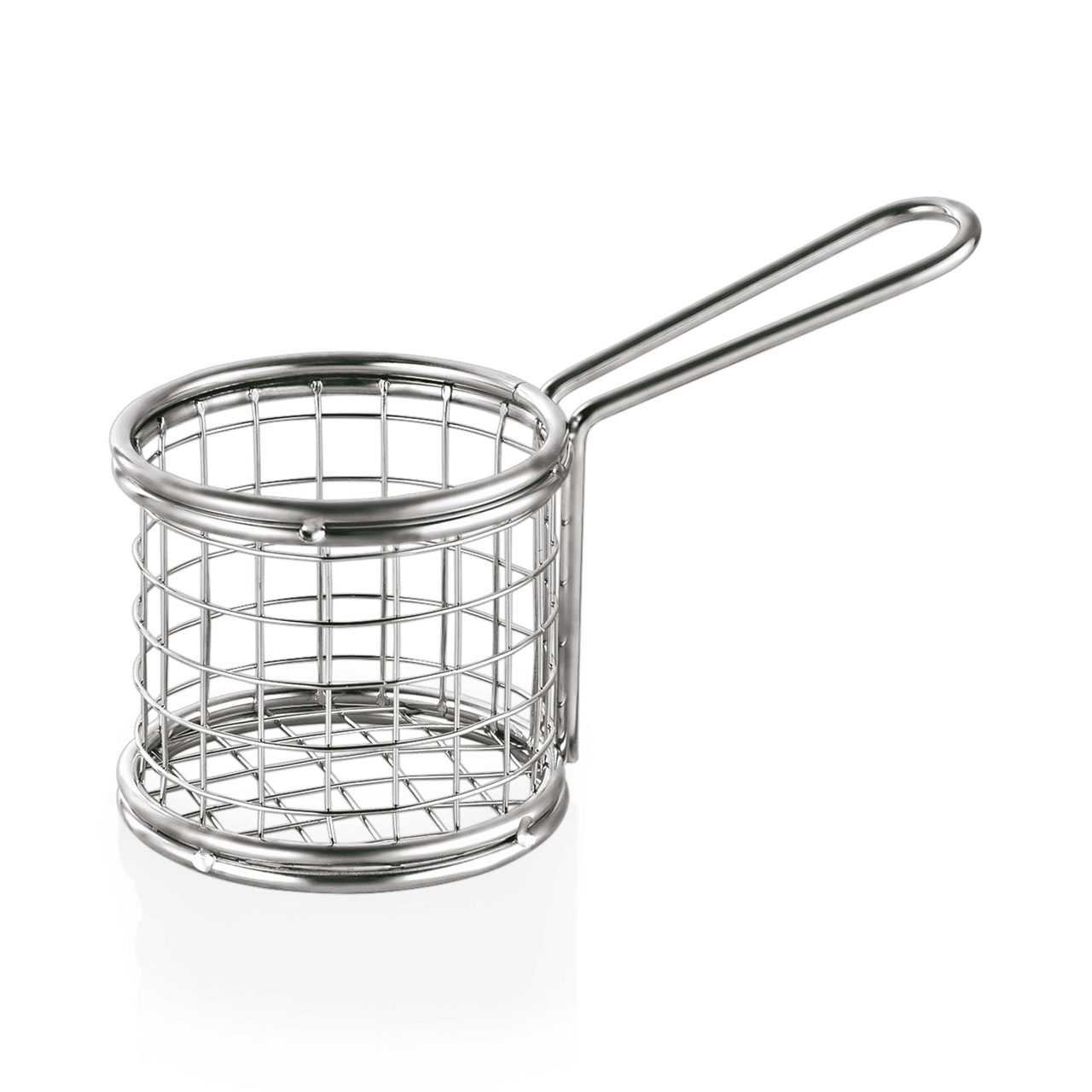 Servírovací košík, průměr 8,5 cm, výška 8 cm, chromniklová nerezová ocel. Vynikající volba pro moderní gastronomii i náročné domácí použití.
