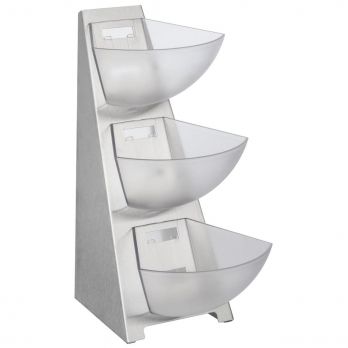 Bufetový stojan vyrobený z nerezové oceli, 3 plastové misky cca 1l, matný vzhled.