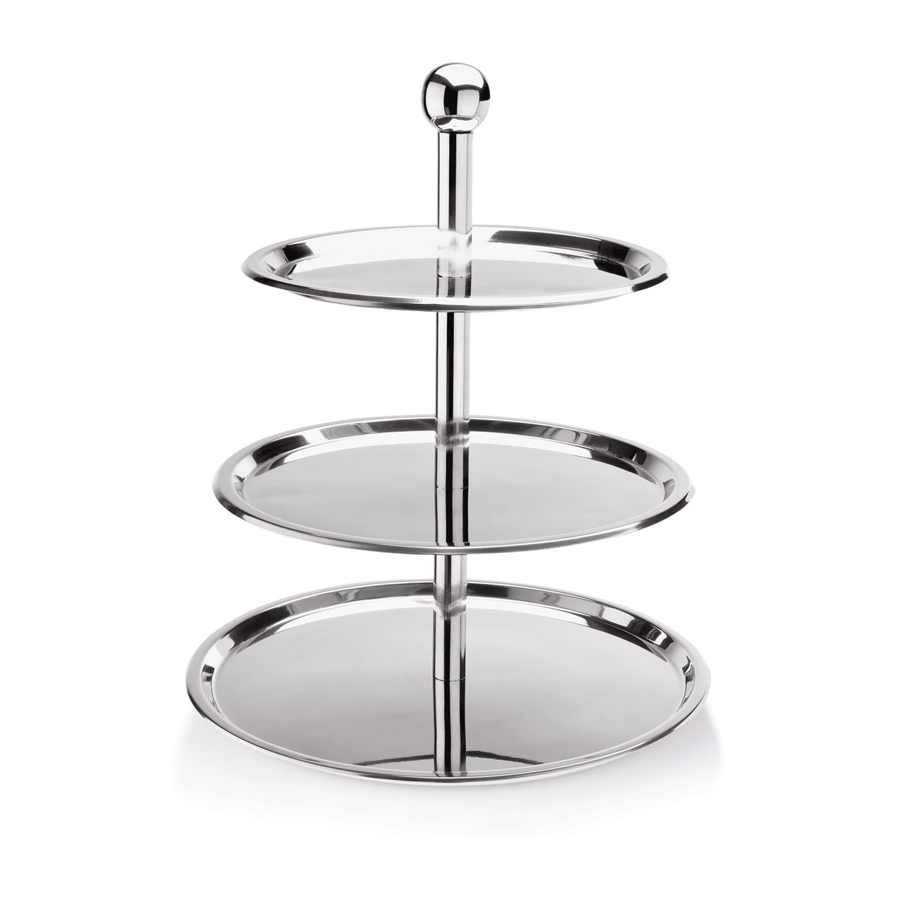Etažér, 3-stupňový, 46 cm, chromniklová nerezová ocel. Ideální pro profesionální použití v gastronomii. Vysoce kvalitní materiál zajišťuje dlouhou životnost a spolehlivost.