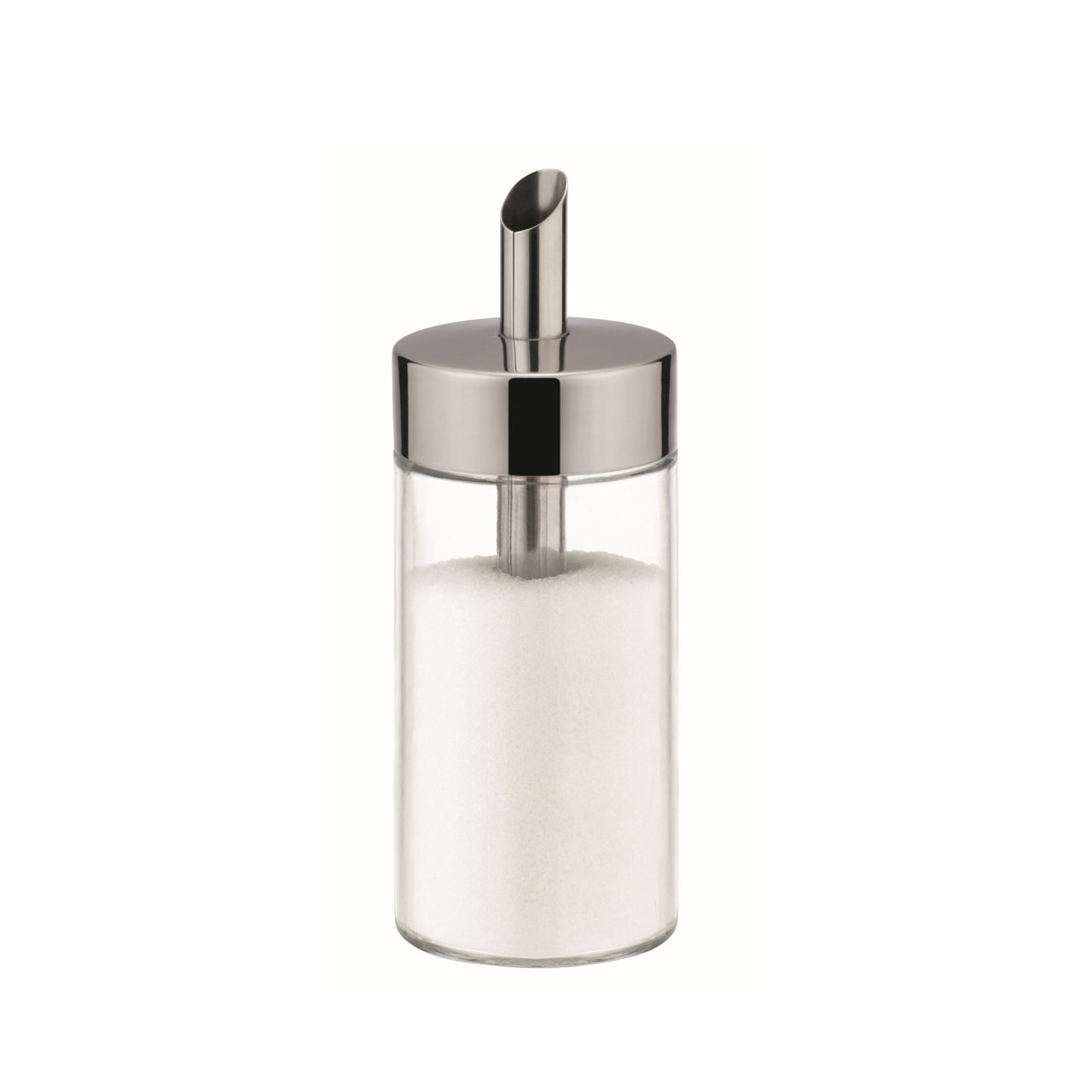 Dávkovací cukřenka pro domácnosti i gastronomická zařízení. Vyrobeno z prvotřídní nerezavějící oceli a skla.