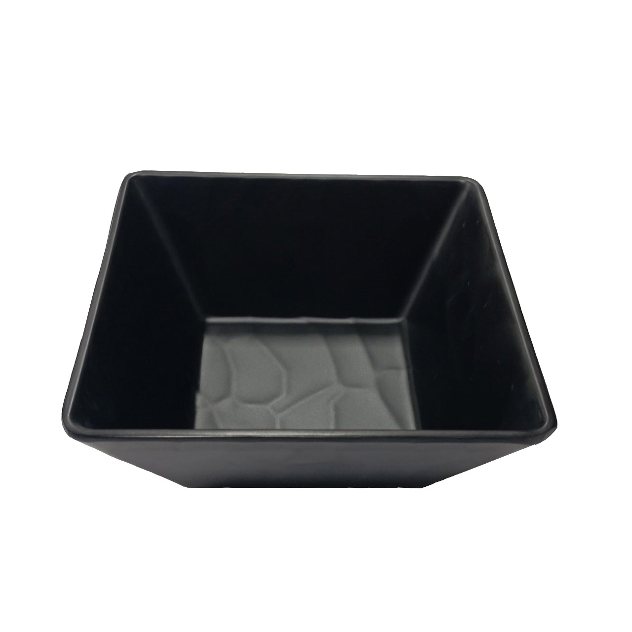 Mísa / miska hranatá z porelinu v černé barvě se strukturovaných dnem. Délka 14 cm. Teplotní odolnost od -20°C do 100°C. Porelin je 100% melamin a je vhodný pro profesionální myčky nádobí do 100°C. Není vhodný do mikrovlnné trouby.