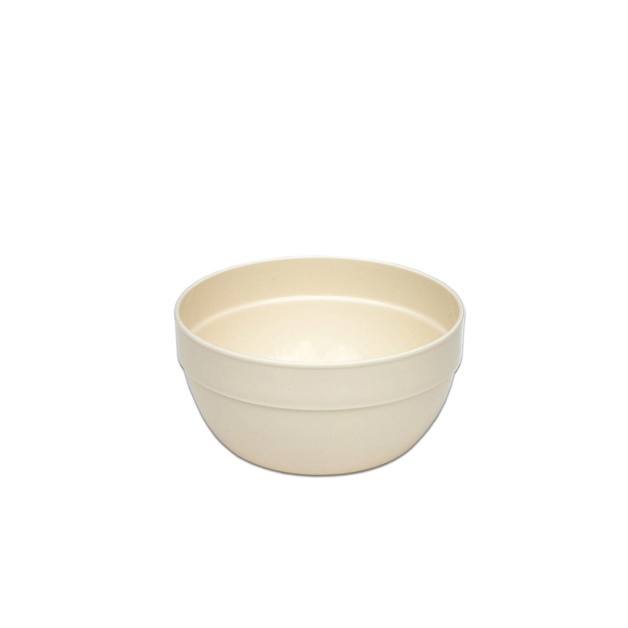 Plastová miska o objemu 0,6 l, krémová barva.