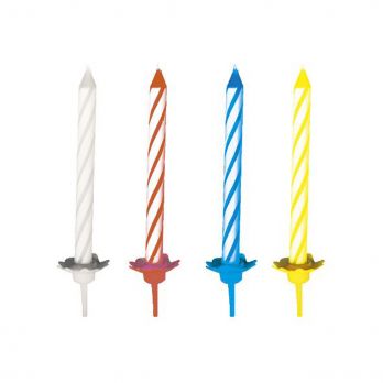 Narozeninová svíčka se stojánkem Spirála. Průměr 0,5 cm, výška 6 cm. V balení je 24 ks.