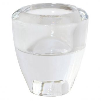 Svícen skleněný 2 v 1 na čajové i tenké svíčky. Rozměr 7,3 x 6,8 cm.