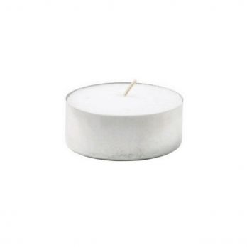 Čajová svíčka o průměru 5,8 cm a výšce 2 cm JUMBO. Doba hoření 10 h. V balení je 20 ks.