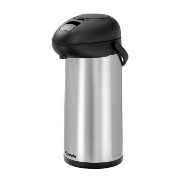 Plášť z nerezové potravinářské oceli, rukojeť a víko z odolného černého plastu. Rukojeť pro přenášení, zajištění pumpičky, dno s integrovaným prstencem (umožňuje otočit termosku o 360°). Kapacita: 5 litrů. Rozměry: Š 181 x H 245 x V 428 mm. Hmotnost: 2,4 kg. Výška min 370 °pod výpustným kohoutem, průměr plochy stání 150 mm, ztráta teplotní/hod cca 1,7 °C. Uzamykací systém, víko s nalévacím mechanismem, odnímatelná hlava pro snadné čištění.
