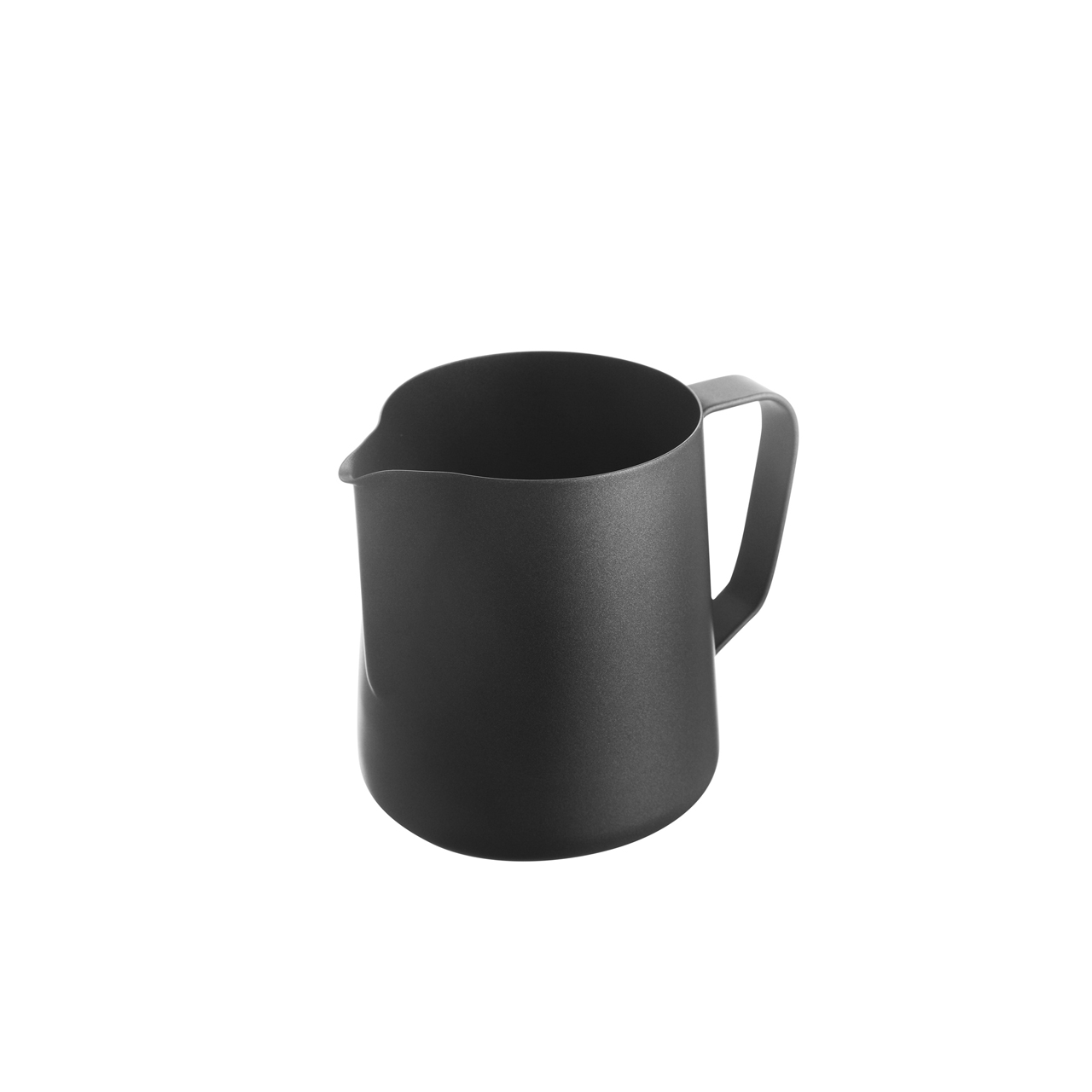 Nerezová konvička o objemu 0,4 l v černém matném provedení s nepřilnavým povrchem. Rozměry 11,5 x 8 x 9,5 cm