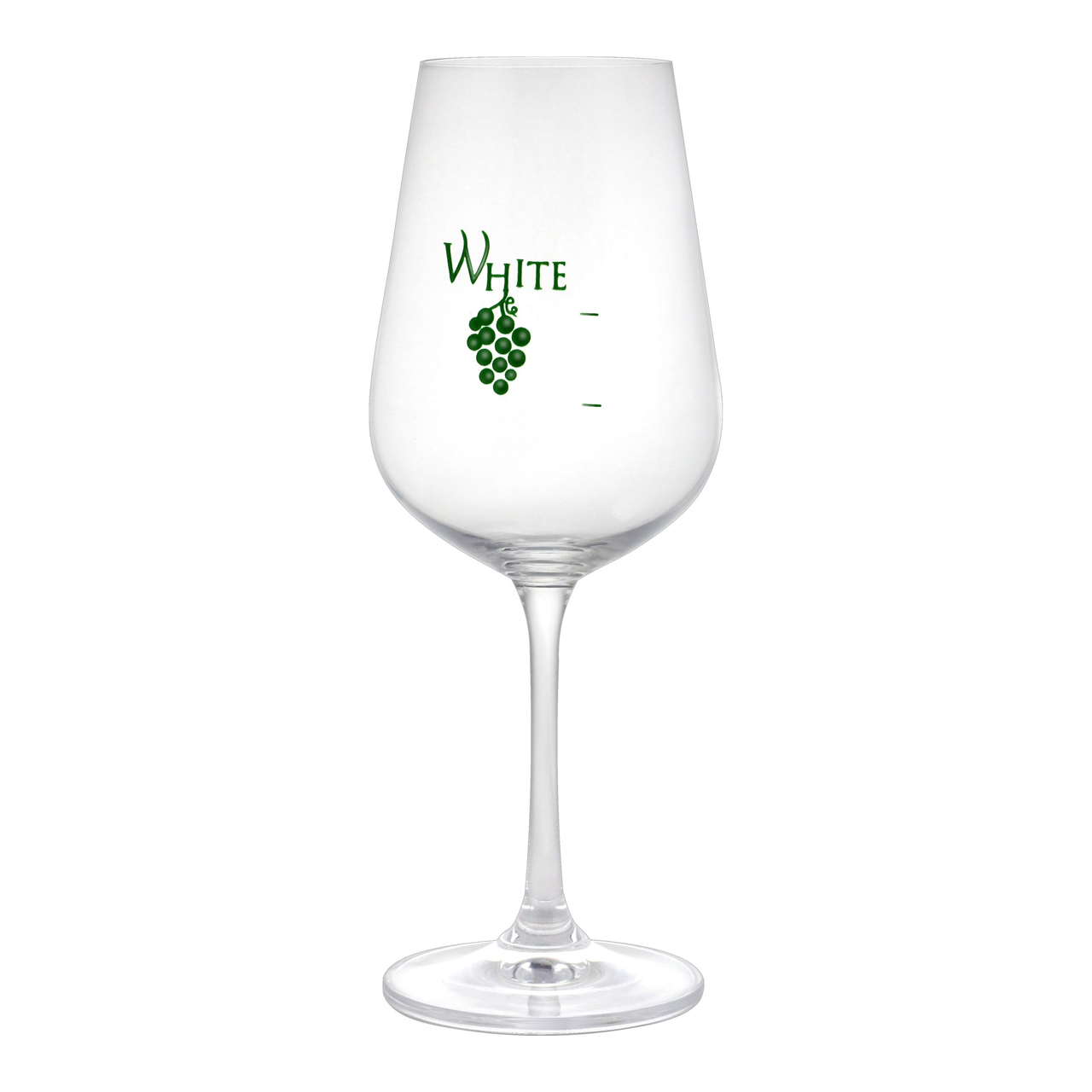 Pohár na bílé víno s exkluzivním reliéfním dekorem "White wine" s dvěmi orientačními ryskami o objemu 0,2 a 0,1 l.