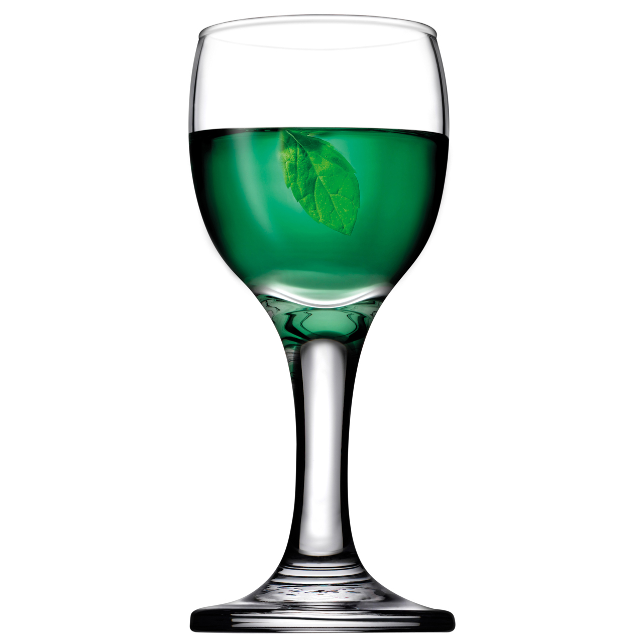 Pohár na stopce vhodný na likéry se zataveným okrajem.