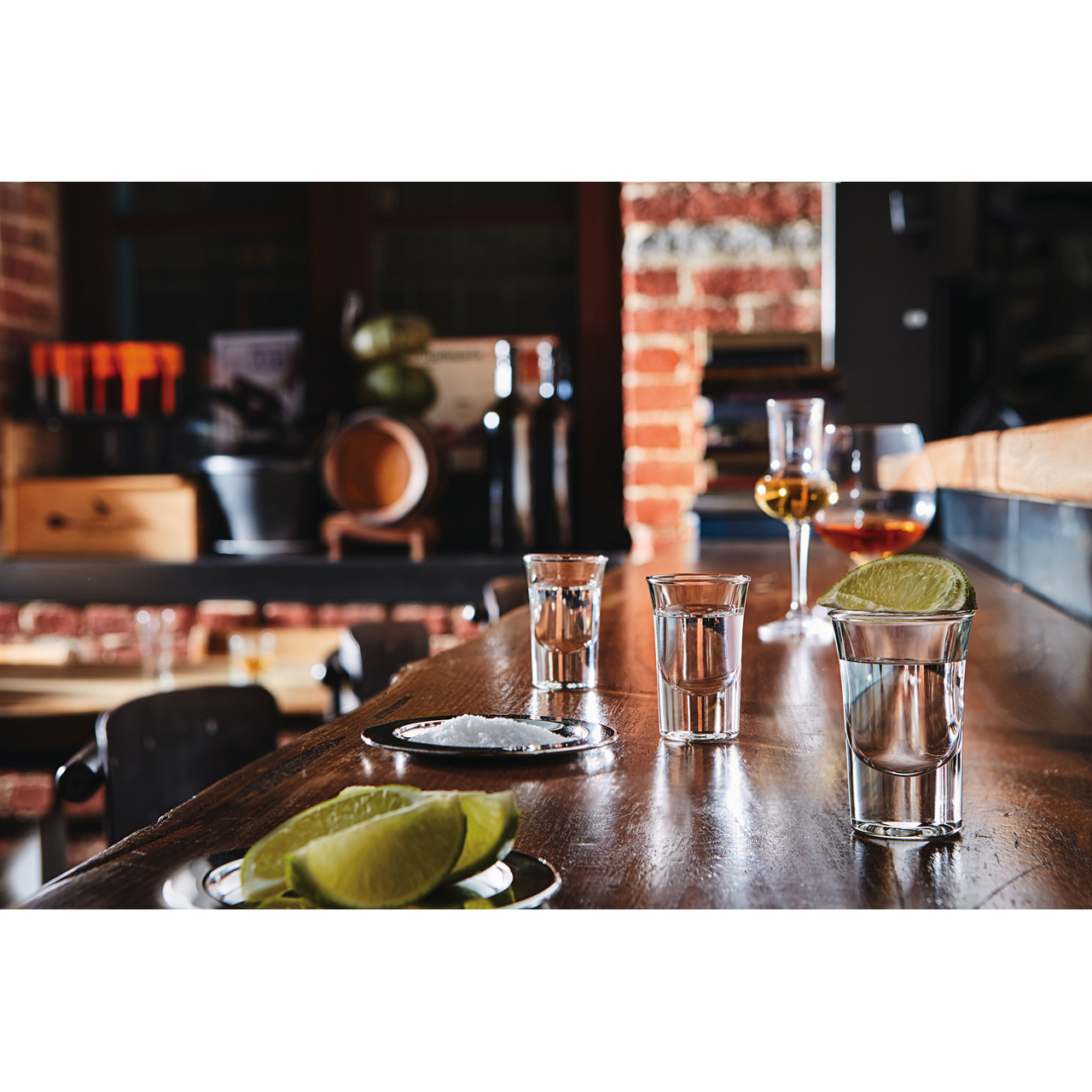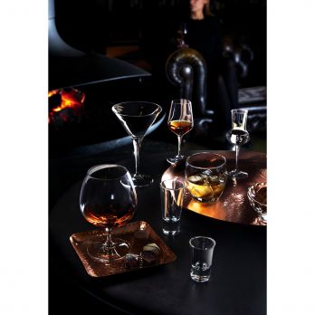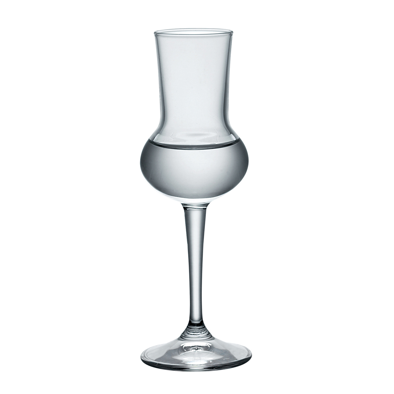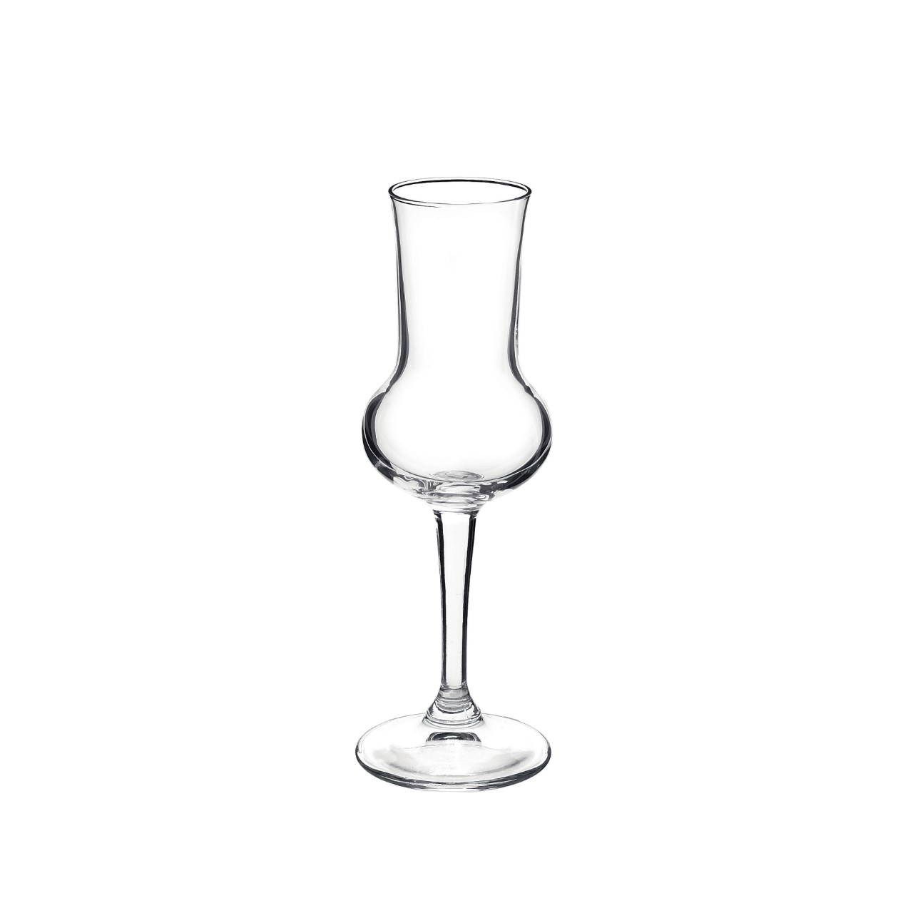 Pohár na stopce vhodný na grapu, rumy i likéry s cejchem 0,02 + 0,04 l.
