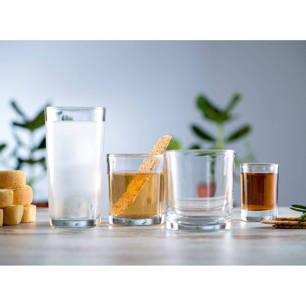 Sklenice na vodu, whisky i servis destilátů.