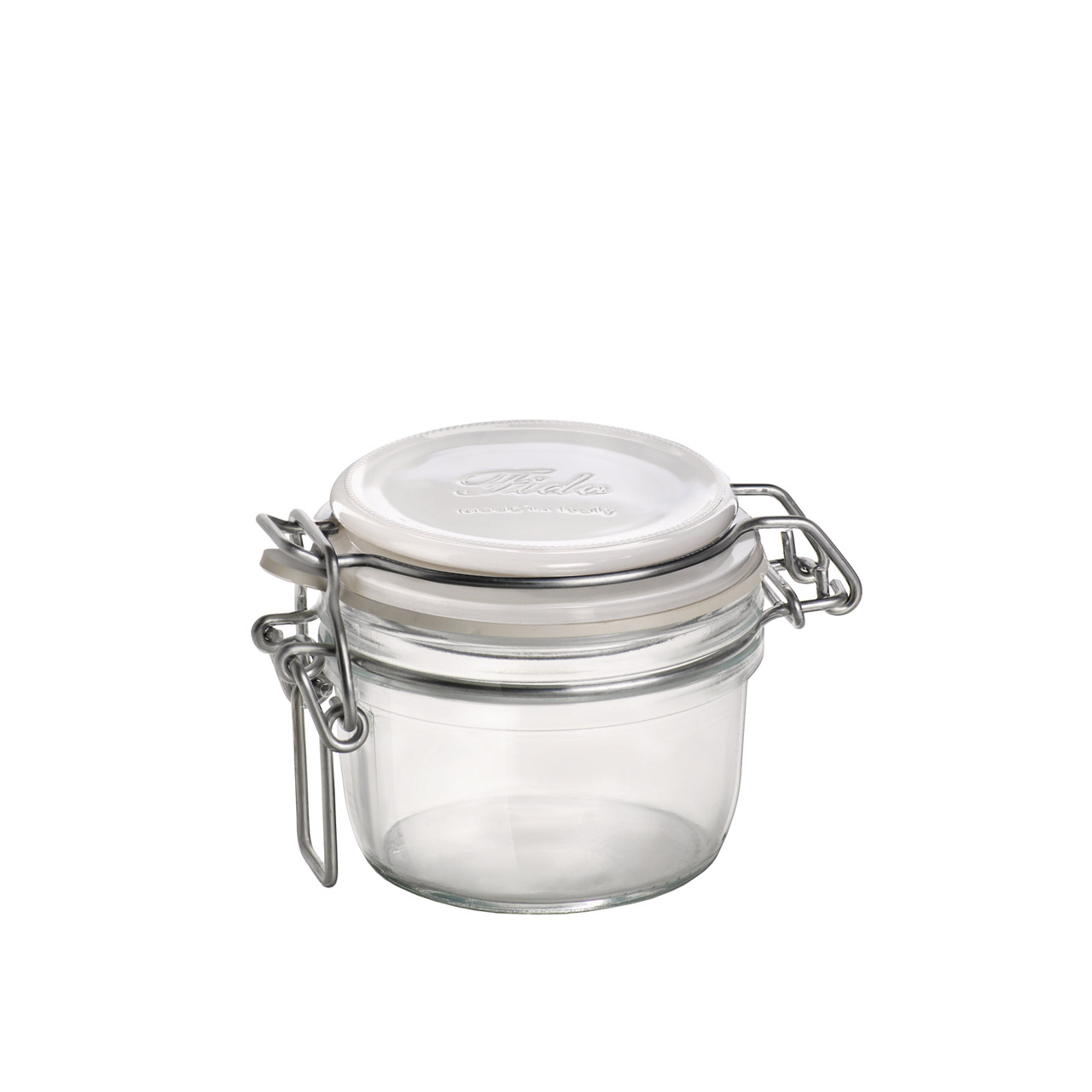 Výška 71 mm; Průměr 83,3mm, sklenice s patentním uzávěrem pro opakované použití pro distribuci a uchovávání pokrmů, surovin a zavařenin