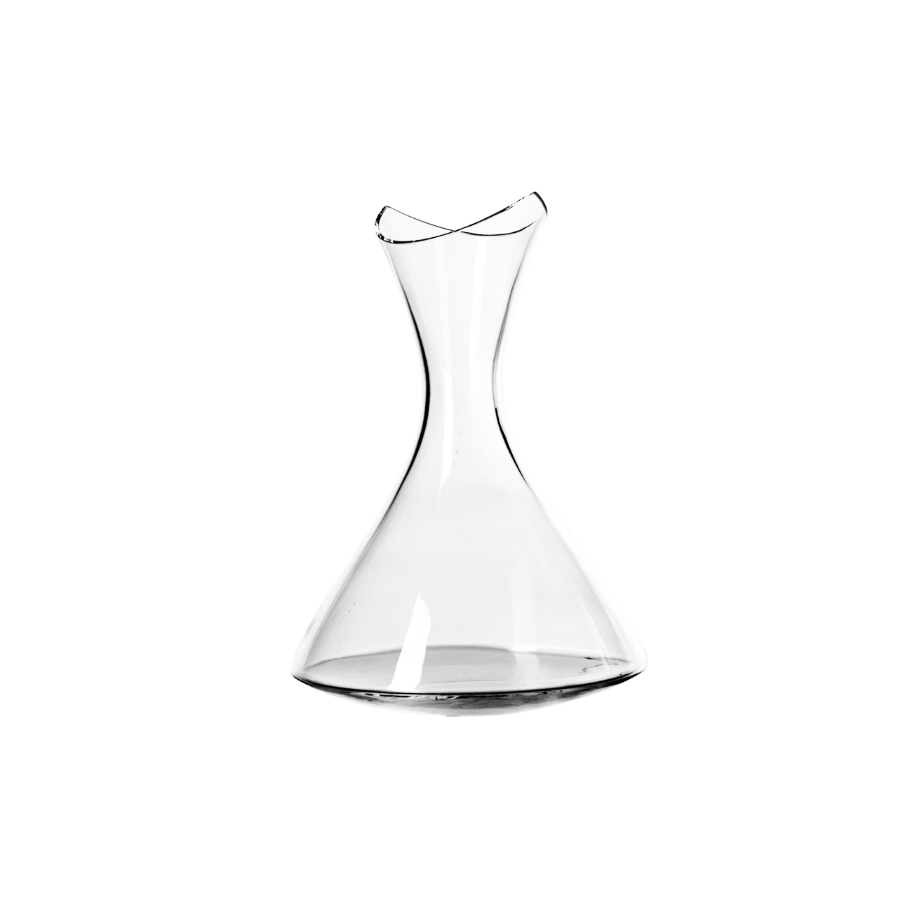 Skleněná dekantační karafa se zajímaným dnem, průměr 193 mm.