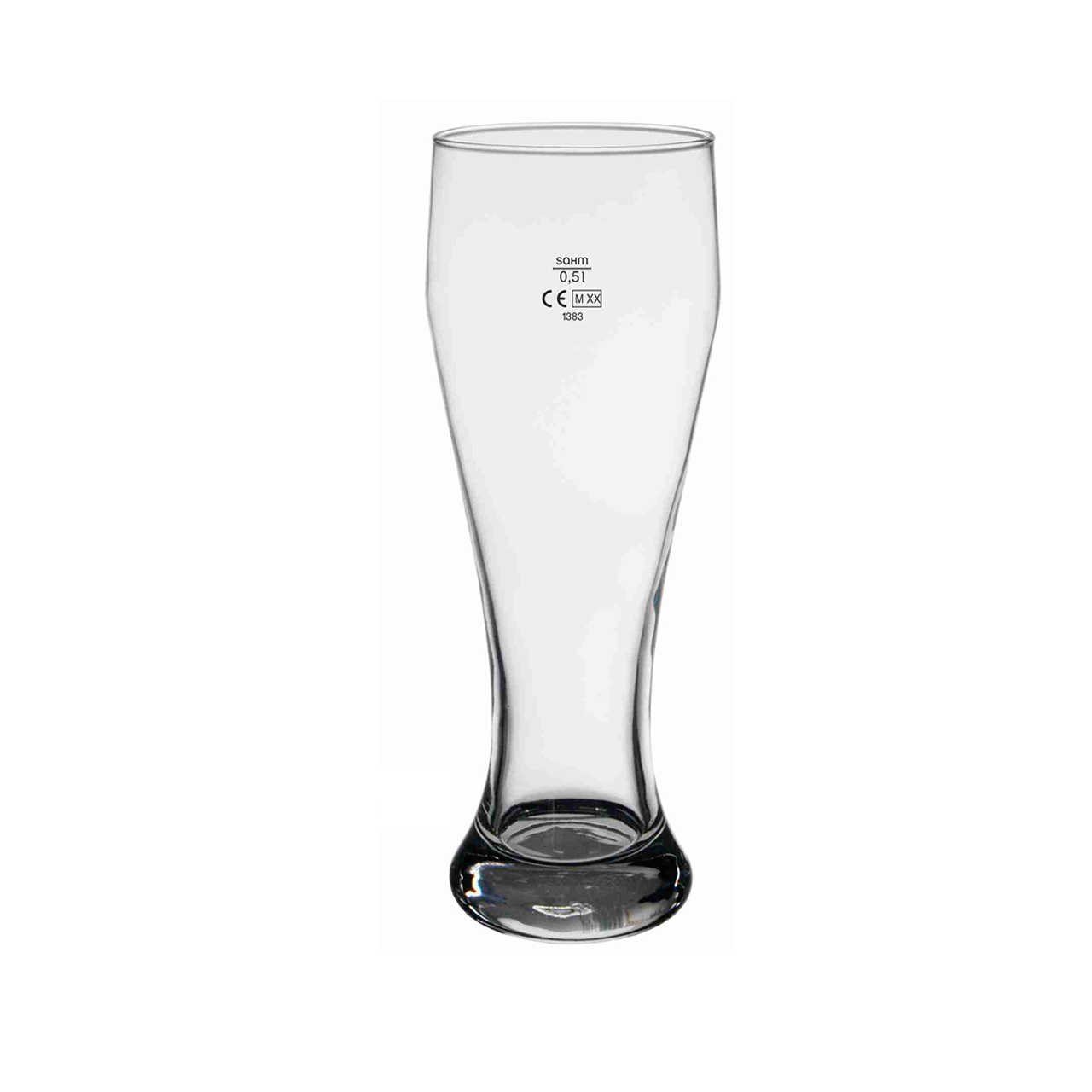 Sklenice pro pšeničná nebo svrchně kvašená piva, vhodná i pro prémiové ležáky s cejchem 0,5 l.