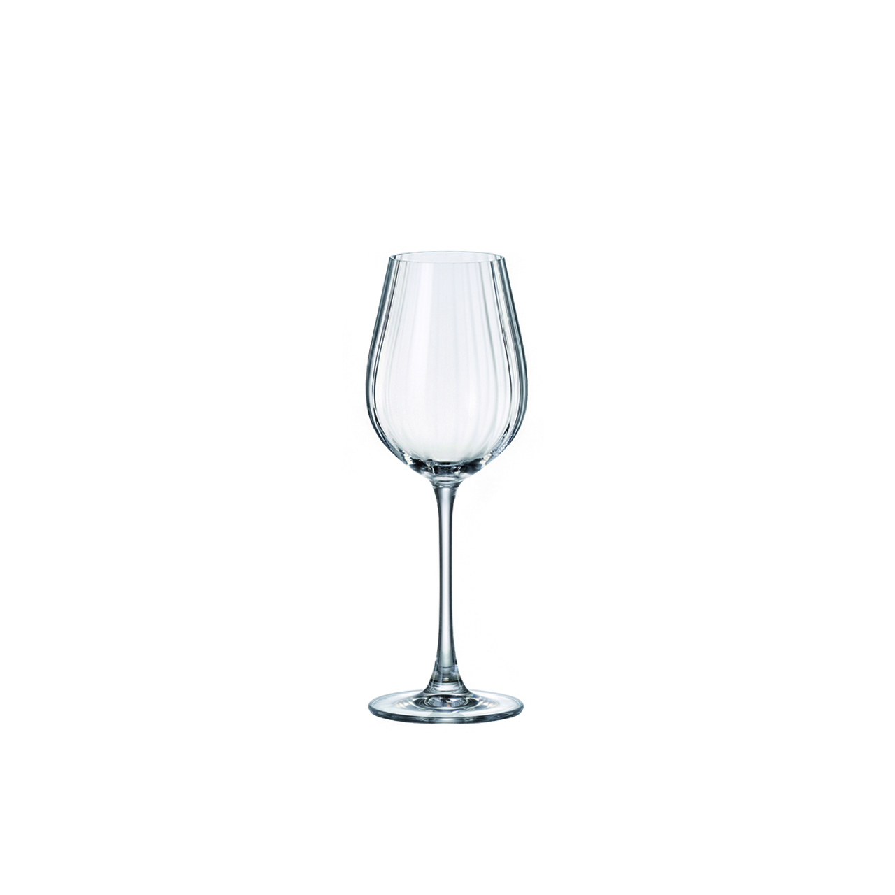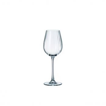 Pohár s optikou na stopce na bílé víno.