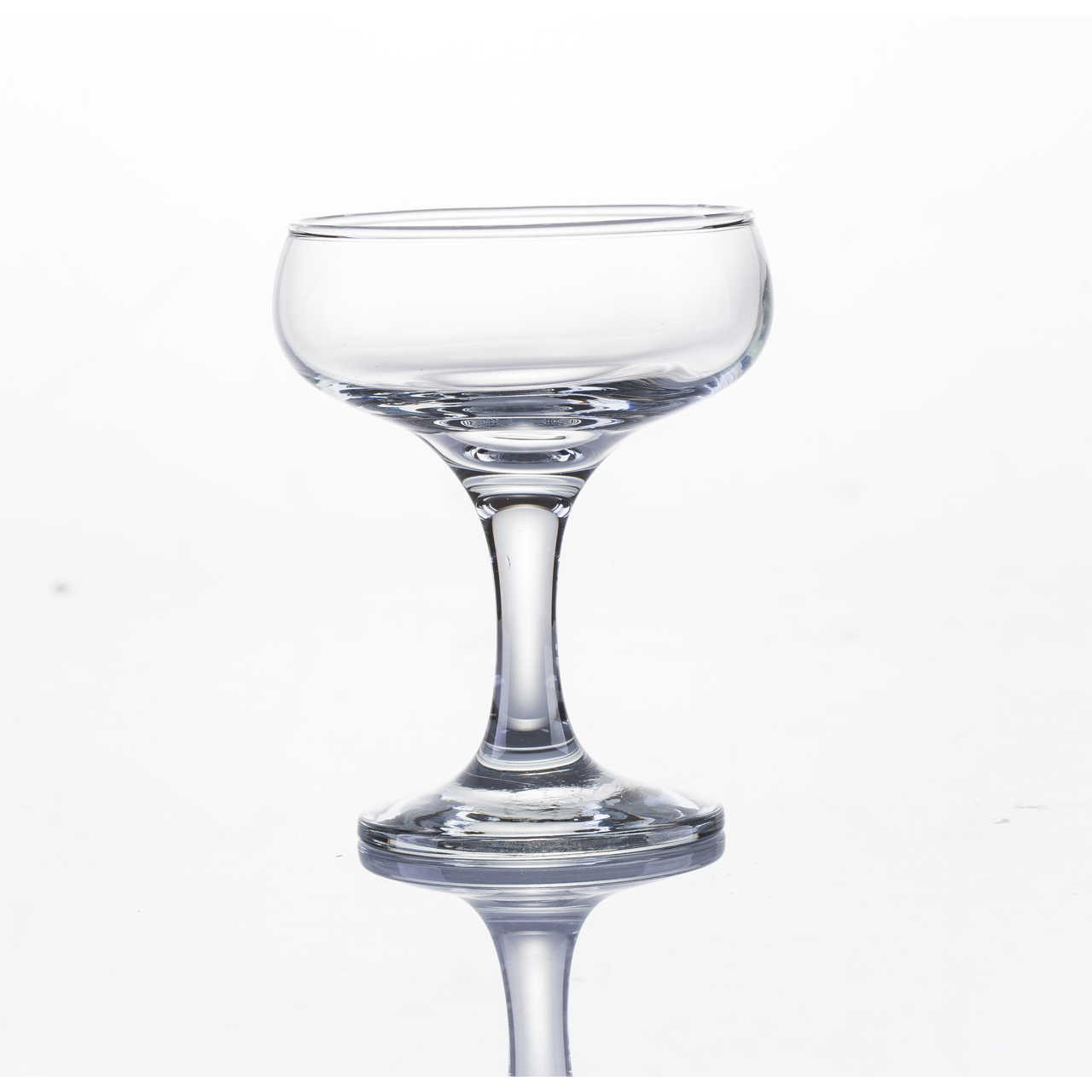Pohár / miska na stopce na sekt se zataveným okrajem. Tato položka je doporučena pro podávání VARIOUS DRINKS.