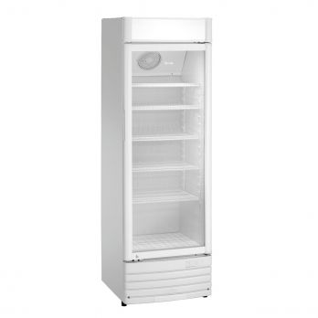 Chladicí vitrína s křídlovými prosklenými dveřmi v rámu. Bezpečnostní sklo, dvojité zasklení. Obsahuje 1 teploměr pro zavěšení uvnitř. Uvnitř plast ABS, barva bílá. Objem 302 litrů. 5 roštových poplastovaných polic. Rozměr polic Š 500 x H 400 mm, výškově nastavitelné. Teplotní rozsah 0 °C do 10 °C. Mechanická regulace teploty, bezstupňová. Statické chlazení s 1 ventilátorem, chladicí kapalina R600a / 0,052 kg. Klimatická třída 4. Termostat. Okolní teplota 16 °C až 30 °C. Třída energetické účinnosti D. Spotřeba energie 642 kWh / rok Funkce automatického odmrazování. Reklamní displej s LED osvětlením pro samolepky rozměru max.: š 600 x v 155 mm; pro tisk rozměru max.: Š 495 x V 130 mm. Izolace Cyklopentan C5H10, 45 mm. Vnitřní osvětlení. Pant dveří vpravo, nelze změnit. Uzamykatelná. Ovládání otočným knoflíkem. Obsahuje 1 ventilátor, LED osvětlení samostatně zapínatelné s reklamním displejem, 2 kolečka, 2 nožičky. Příkon: 155 kW / 230 V - 50 Hz Materiál lakovaná ocel, sklo, ABS plast. R