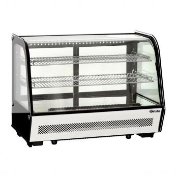 Obslužná chlazená vitrína Bartscher. Konstrukce z odolného plastu, LED osvětlení, prosklení z dvojitého bezpečnostního skla, přední sklo oblé, automatické odtávání, cirkulační chlazení se dvěma ventilátory, 2 výškově nastavitelné police, posuvné zadní dveře. Ideální nastavení teploty bylo naprogramováno ve výrobě a pohybuje se mezi 2 ° C (spodní teplotní limit) a 6 ° C (horní teplotní limit). Tato nastavení umožňují, aby chladicí vitrína fungovala v teplotním rozsahu cca. 2 ° - 12 ° C. Uživatel toto nastavení již nemůže změnit. - posuvné zadní dveře - 2 výškově nastavitelné rošty: nahoře Š 810 x H 370 mm, dole Š 810 x H 400 mm - objem 160 l - chlazení: R600a - rozměr: Š 885 x H 580 x V 690 mm - příkon 0,16 kW / 230 V / 50 Hz - hmotnost: 66,3 kg Dodáváno včetně 2 výškově nastavitelných roštů, rozměrů: horní: Š 810 x H 370 mm spodní: Š 810 x H 400 mm