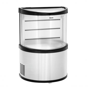 Chladič nápojů pro supermarkety, kiosky, benzinové pumpy aj. Pro lahve a plechovky. Jedna přihrádka. Prostor stání z nerezové oceli, rozměr Š 600 x H 340 mm. Vnitřní výška 450 mm. Objem 60 litrů. Teplotní rozmezí od 2 do 8 °C. 8stupňová regulace teploty. Termostat, chlazení cirkulující vzduch, kompresor. Chladicí kapalina R600a. Automatické odmrazování, odpařování kondenzátoru, vnitřní LED osvětlení. Na 4 kolečkách, 2 uzamykatelná. Digitální ukazatel. Kontrolka osvětlení, ZAP/VYP.