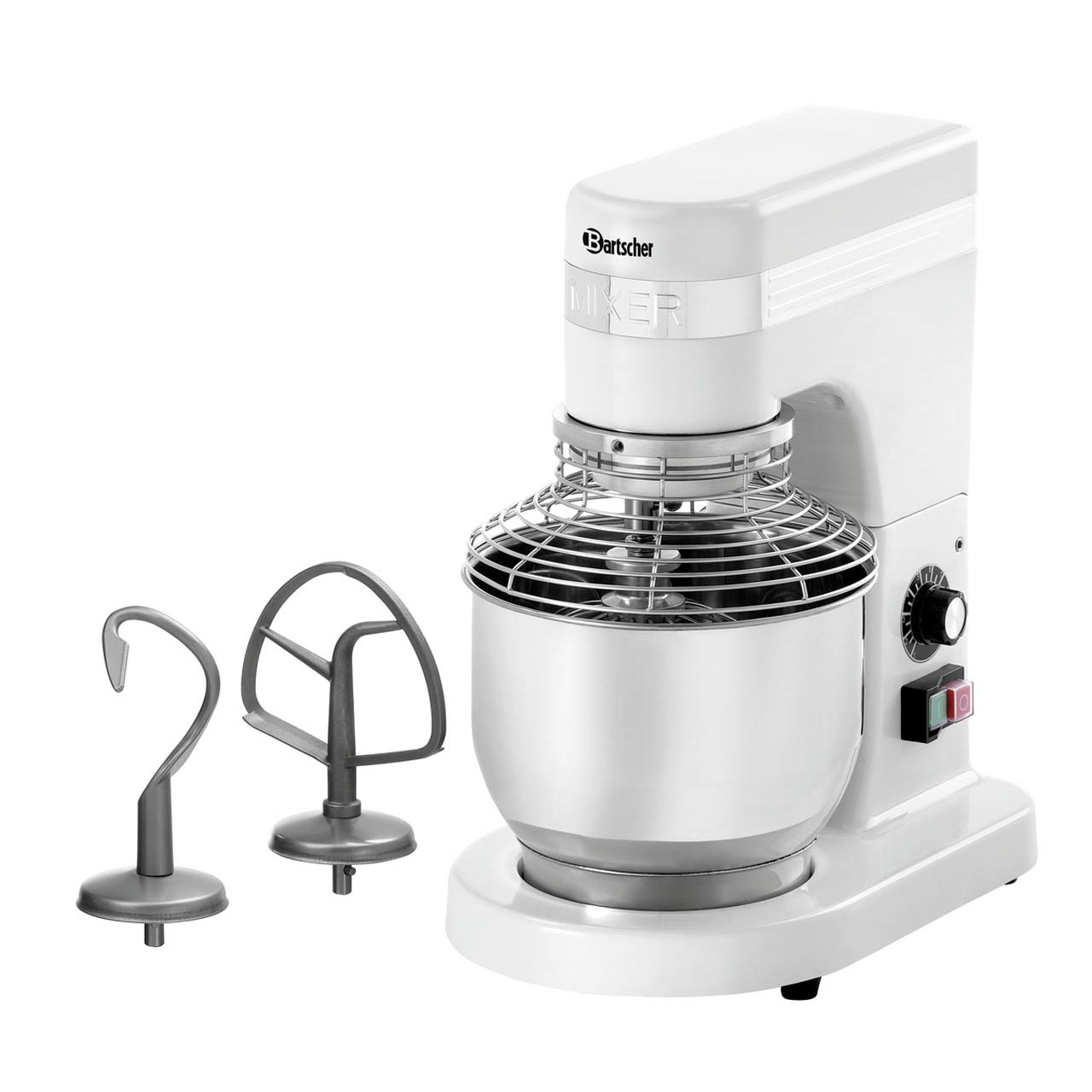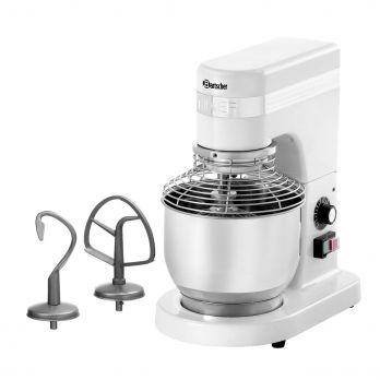 Malý, ale výkonný planetový mixér pro 0,75 kg těsta na jednu operaci. S plynulou regulací lze s mixérem šlehat, míchat, hnětat. Výrobní množství těsta 0,75 kg / 5 litrů. Bezpečnostní spínač, ZAP/VYP. Včetně 1 mixovací nádoby, nerezová ocel, odnímatelná 1 plochého šlehače, nerezová ocel 1 hnětací hák, nerez 1 metla, nerezová ocel, litý hliník 1 ochranná mřížka, nerez Příslušenství vhodné do myčky nádobí. Příkon: 250 W / 230 V / 50-60 Hz. Materiál: litý hliník. Rozměr: Š 230 x H 260 x V 415 mm. Hmotnost: 14,8 kg.
