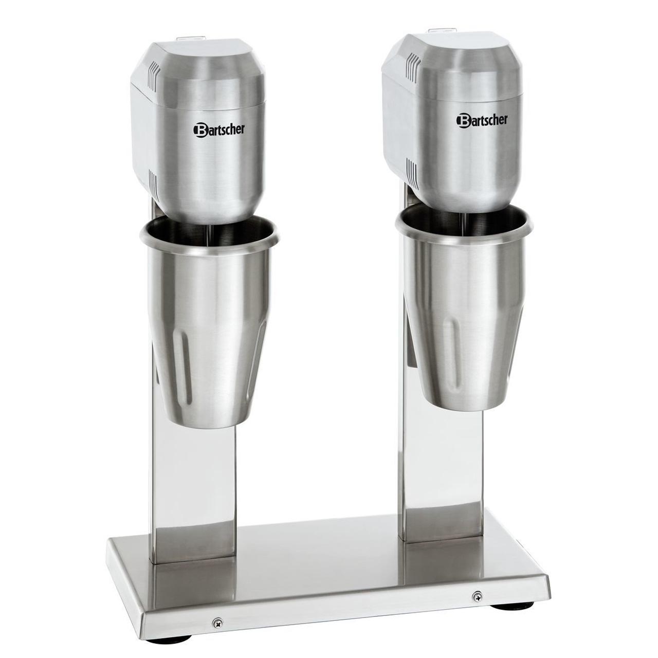 Barový mixér dvojitý Turbo vhodný pro přípavu mléčných nápojů a koktejlů. Z nerezové potravinářské oceli, 2 rychlosti. Samostatné ovládání. 2 nerezové mixovací nádoby (možno mýt v myčce nádobí): objem: 1000 ml (kapacita 1 nádobky max. 700 ml.). Příkon: 800 W/230 V. Rozměry: 330 (Š) x 195 (H) x 480 (V) mm. Hmotnost: 7,45 kg.