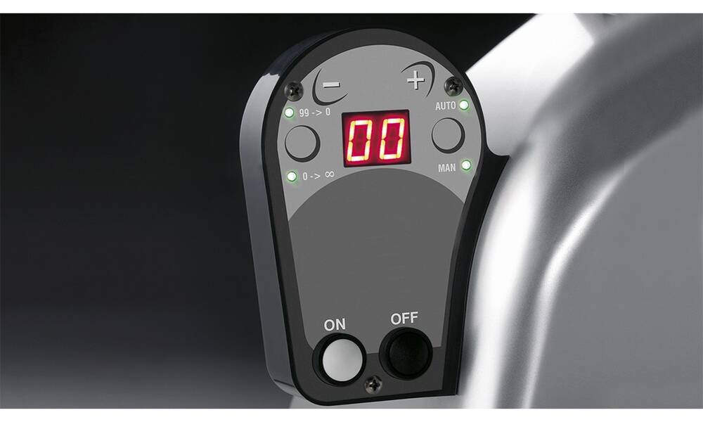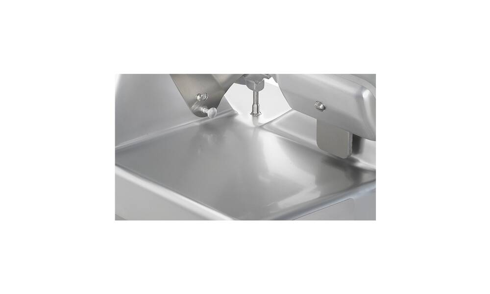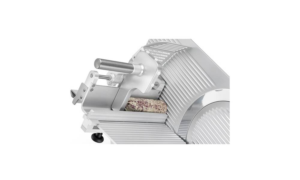 - model je vybaven automatickým pojezdem, který umožňuje automatické krájení upevněné suroviny bez nutnosti manuálního posuvu pojezdového stolu obsluhou, nářezový stroj tak automaticky krájí bez nutnosti zásahu obsluhy v průběhu krájení