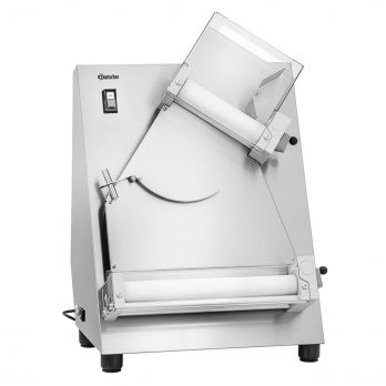 Vyvalovačka těsta o průměru až 400 mm. Úprava tloušťky těsta na dvou válcích na těsto. Materiál válců odolný plast, 2 válce, délka 400 mm. Rameno vodítka těsta. Nastavení tloušťky těsta od 0,5 do 4 mm. Hmotnost těsta 80 až 700 g. Na těsto o průměru 260 až 400 mm. Materiál nerezová ocel. Ideální pro tvarování pizzy, palačinek, těsta na tarte flambee, quisch, pečiva atd. Příkon: 0,37 kW / 230 V / 50 Hz. Rozměr: 540 x 470 x 810 mm. Hmotnost: 31,2 kg.