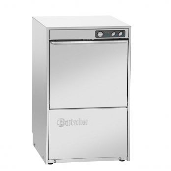 Podstolová myčka nádobí pro sklenice do výšky max. 260 mm. Rozměry koše 350 x 350 mm. Dvoustěnná. Objem nádrže 12 litrů. Materiál nerezová ocel. Dvoustěnné dveře, dveřní spínač Topení kotlem 2,4 kW; Zásobníkový ohřívač 1,25 kW. Ochrana proti chodu na sucho, kontrolka, vypínač Změkčovač vody, dávkovací čerpadlo oplachového prostředku, dávkovací čerpadlo čističe. Bezpečnostní termostat. Doba chodu 120 sekund, výkon max. 30 košů / hod. Spotřeba vody při 2 barech 1,4 litru / cyklus máchání. Tlak vody 2-4 bar, přívod vody 3/4", odtok vody pr. 20 mm, teplota vody na vstupu 5 °C až 60 °C. Počet mycích programů 1 Obsahuje: 1 držák na příbory, 2 univerzální koše, 1 vložka, 1 hadice pro přívod vody, 1 vypouštěcí hadice, 1 plnicí nálevka na sůl. Příkon: 2,59 kW / 230 V / 50 Hz Rozměr: Š 412 x H 458 x V 673 mm. Hmotnost 33,4 kg.