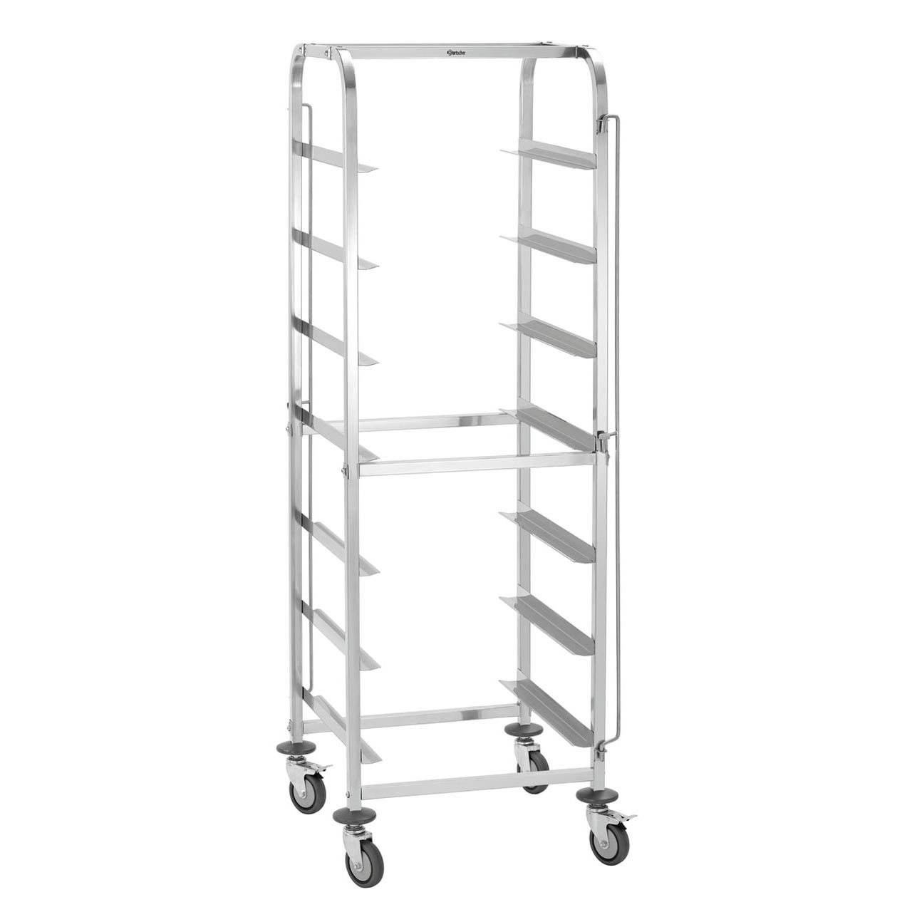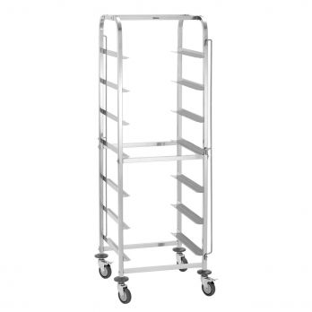 Transportní vozík na koše do myčky 500 x 500 mm. 7 zásuvů, max. nosností 100 kg. Vyroben z nerezové oceli. Bezpečnostní pojistka na přední a zadní straně. Rám z čtvercové trubky 25 x 25 mm. Dodáváme rozkládací. 17 vsuvů, mezi vsuvy 200 mm, nosnost 1 vsuvu max. 20 kg, oboustranně zakládací. 4 otočná kolečka, z toho 2 brzděná; průměr koleček 100 mm. Rozměr: Š 555 x H 555 x V 1750 mm. Hmotnost: 15,8 kg.